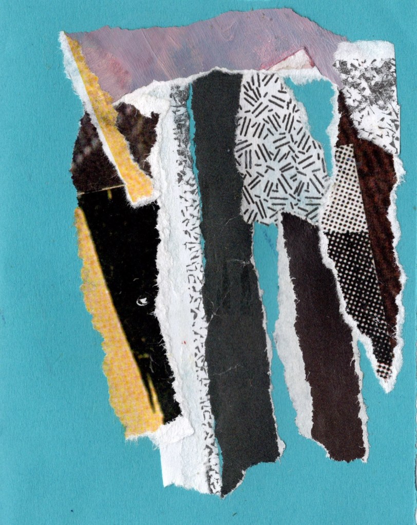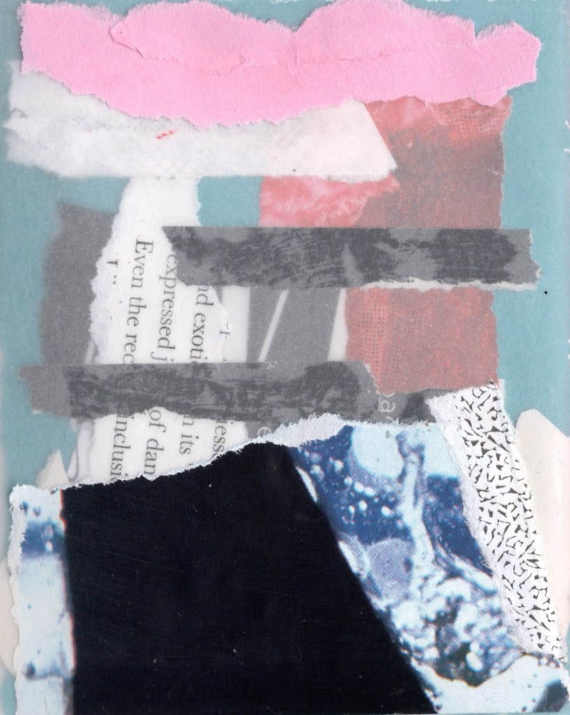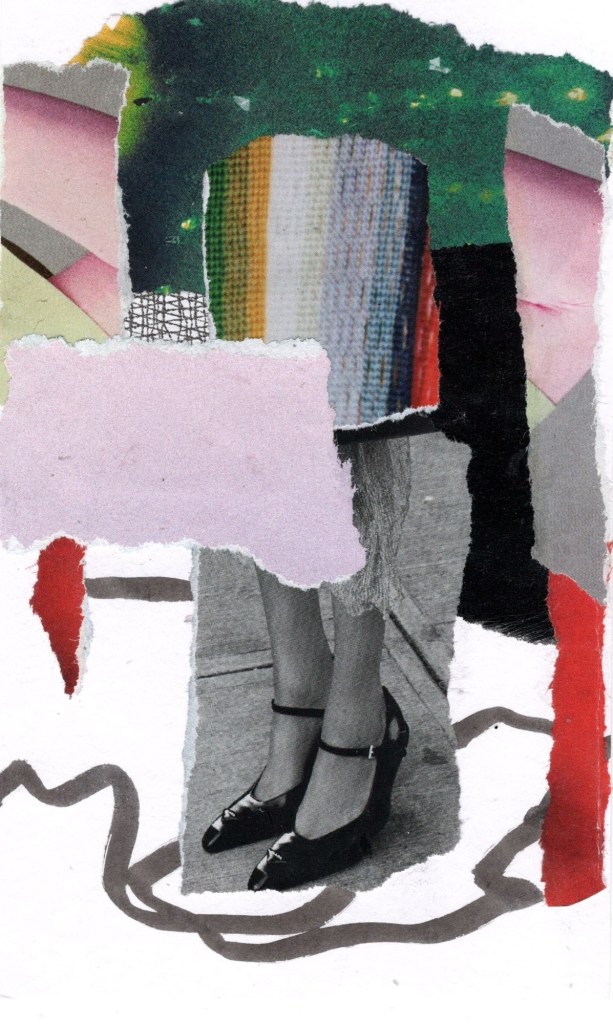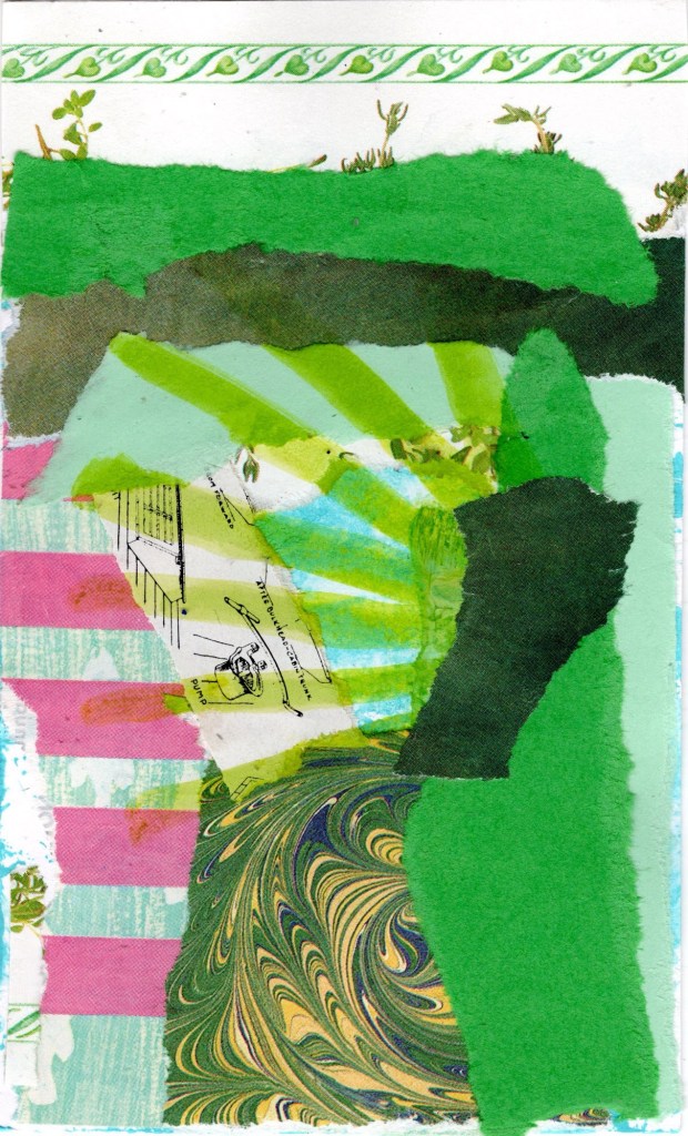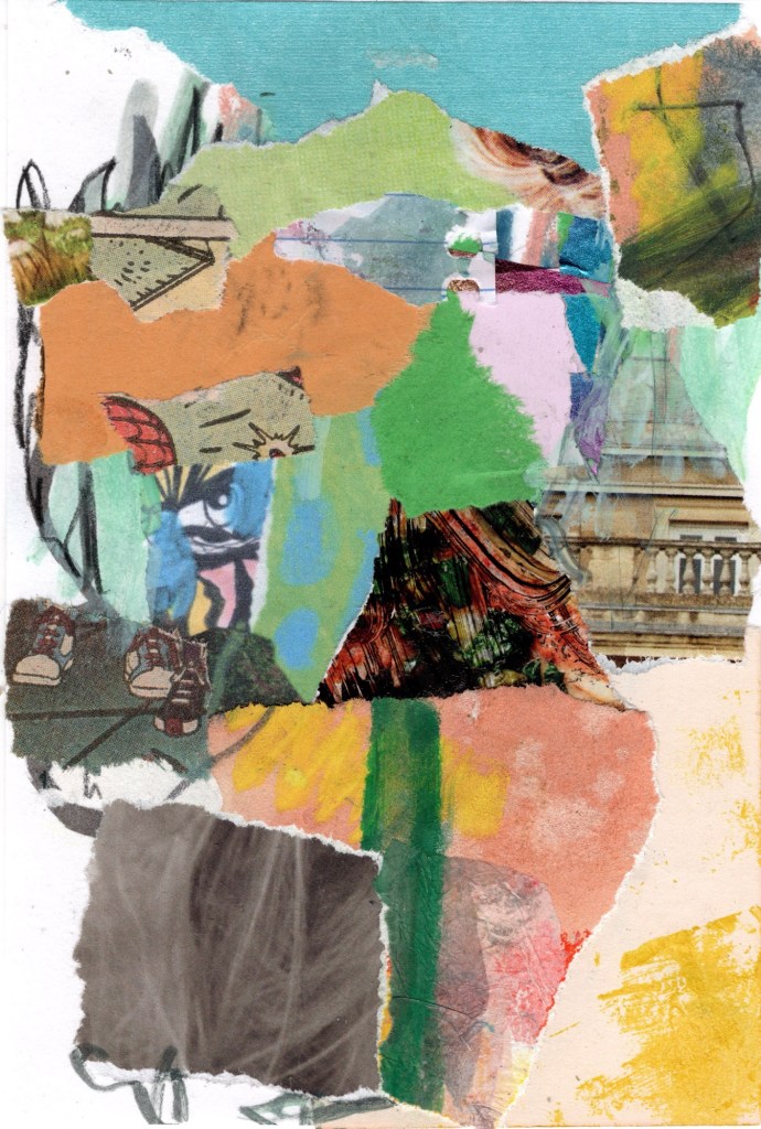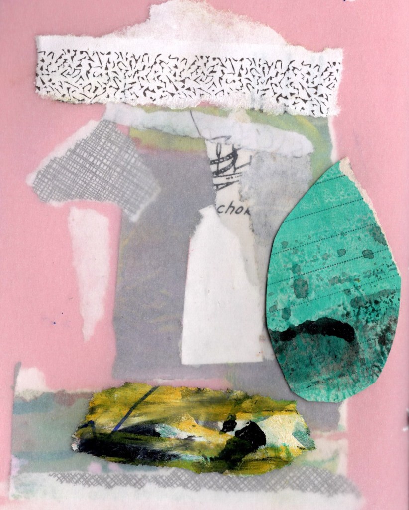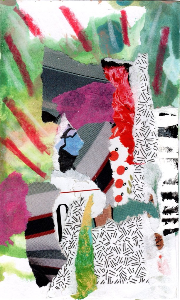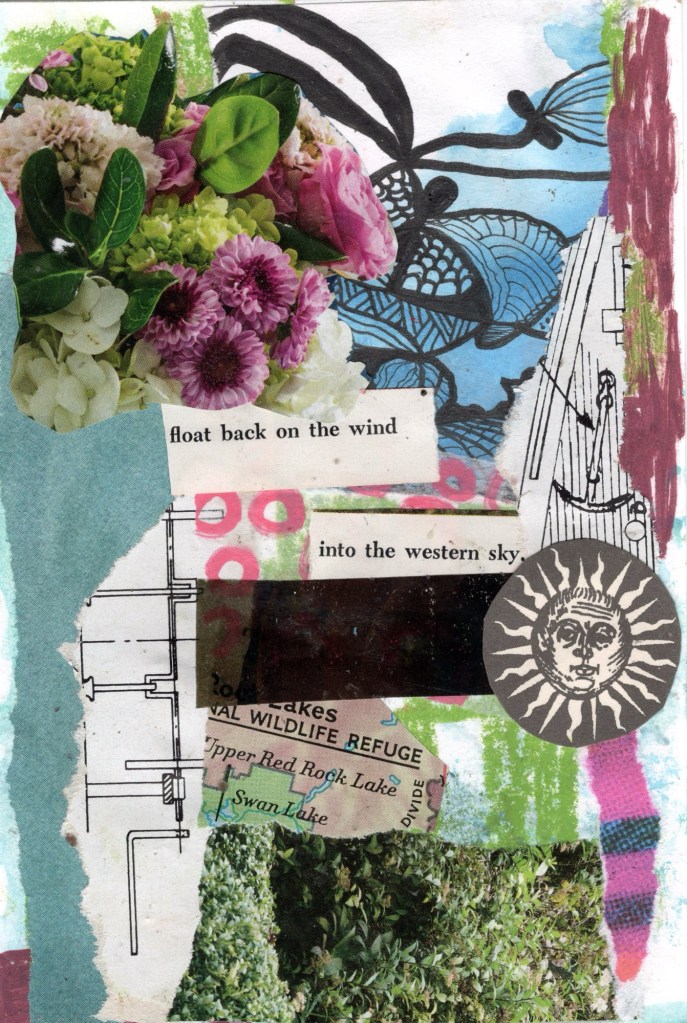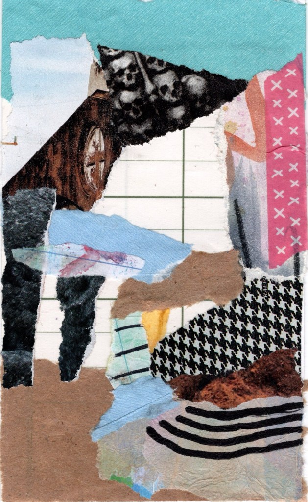 Collage and stitching are two methods that help me to re-enter my body. This was made on Saturday after my morning pages. I found the process to be very therapeutic. I kept the four of wands card upright on my desk, following my desires intuitively for how I wanted this to turn out. Another collage I did Tuesday while meditating on the card is below.