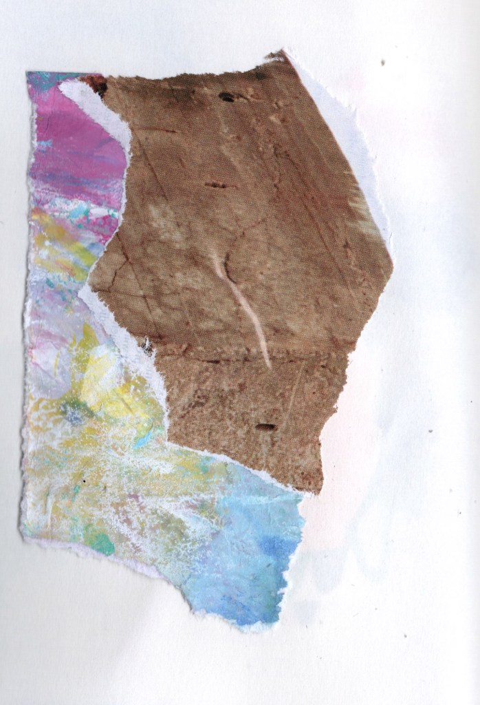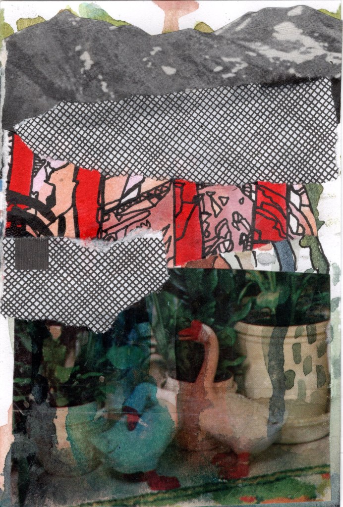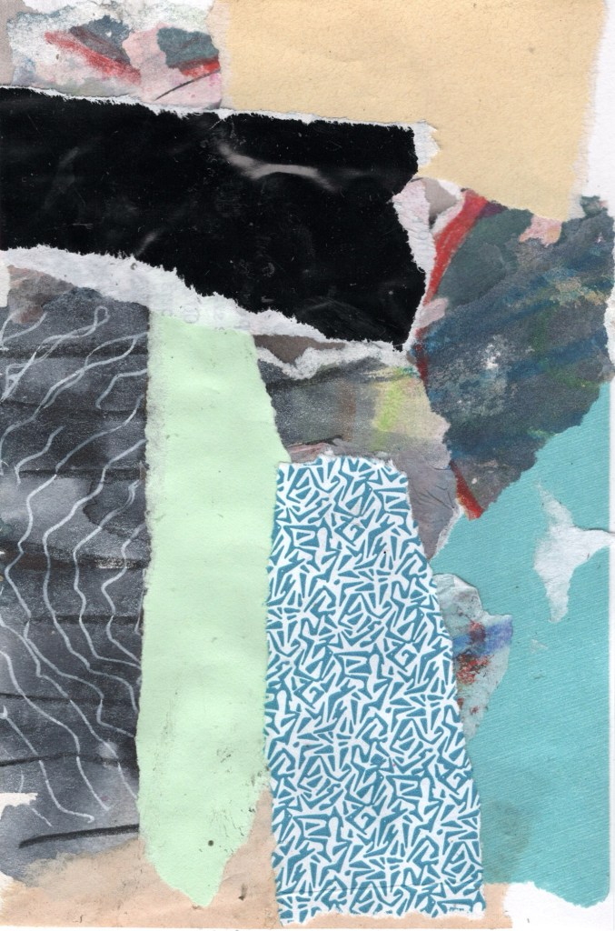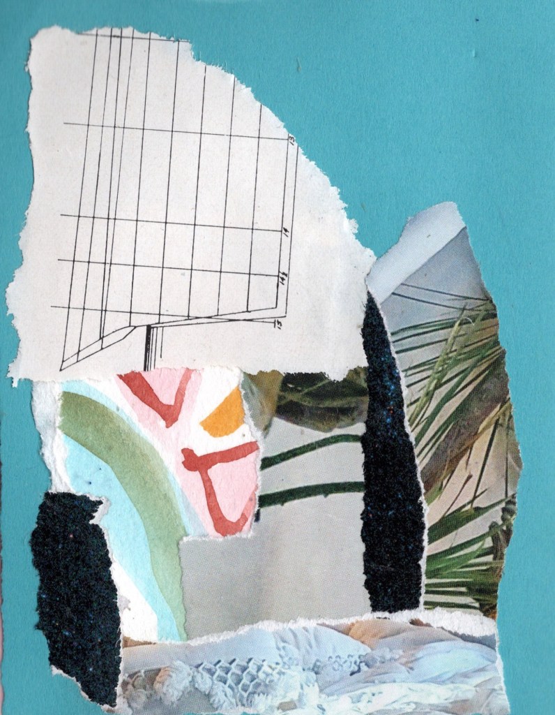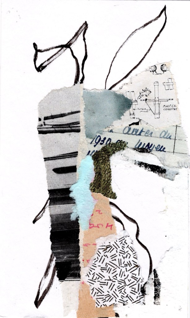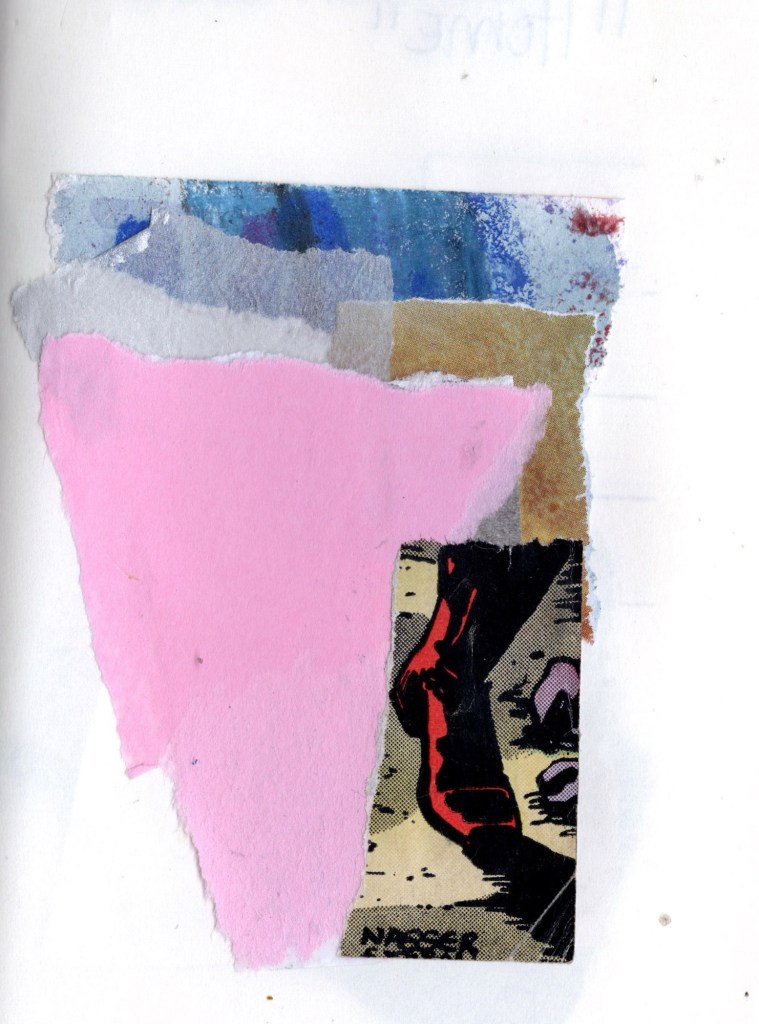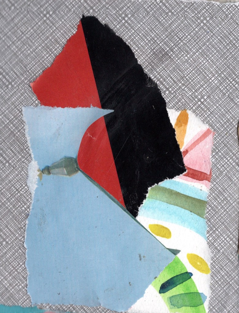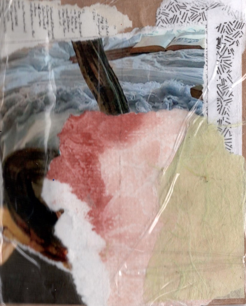 Collage and stitching are two methods that help me to re-enter my body. This was made on Saturday after my morning pages. I found the process to be very therapeutic. I kept the four of wands card upright on my desk, following my desires intuitively for how I wanted this to turn out. Another collage I did Tuesday while meditating on the card is below.