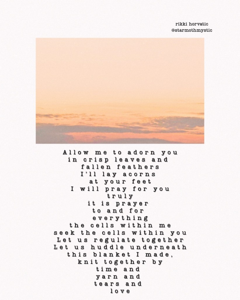 All of this disparate parts make up my ever-shifting and multifaceted community. I celebrate with all of them. My family, my body, my mental health, my creativity, my IRL friends, my online friends, the plants and animals and insects I encounter everyday in this tiny little world I get to walk through.