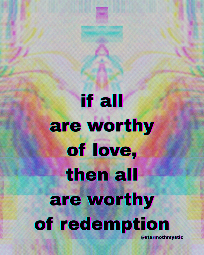 One of my core values as a person who is in recovery is that every person is worthy of redemption. I spent a LONG TIME hating myself. I still struggle with this. Negative self-talk still tries to claw its way into my life. On rough days, some of its tendrils may succeed. It is important for me to remember that I am good. I am worthy of love. I am worthy of redemption.
