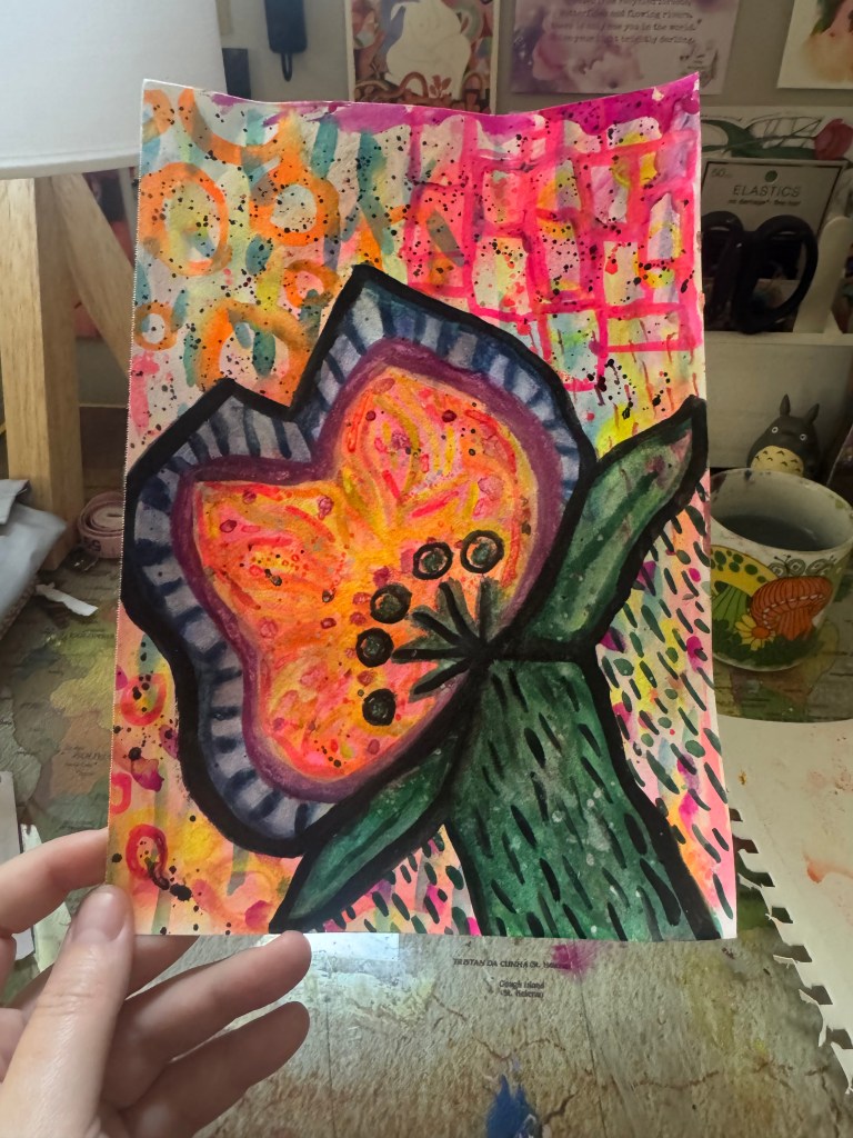 While meditating on this card today, I finished a painting. It’s quite the colorful watercolor painting, and sort of an abstract floral. It felt good to fall into flow with water and pigment and just move.