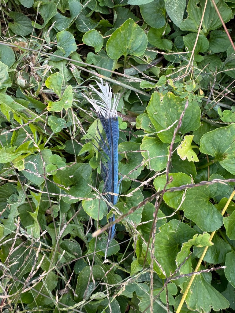 Being outside is often an invitation to observe for me. Observation has taught me so much over the last few years living in the country. I believe this is a blue jay feather, a bird that has come to have some spiritual significance to me. I left it on the ground, as that’s where it decided to land, but did snap a photo. I was standing on the steps of our patio while the dog walked through the backyard, and I looked down for this little gift…a wink from god, the universe, happenstance, whatever. It made me smile. Gratitude swelled in my chest. That is easily a reason to celebrate.
