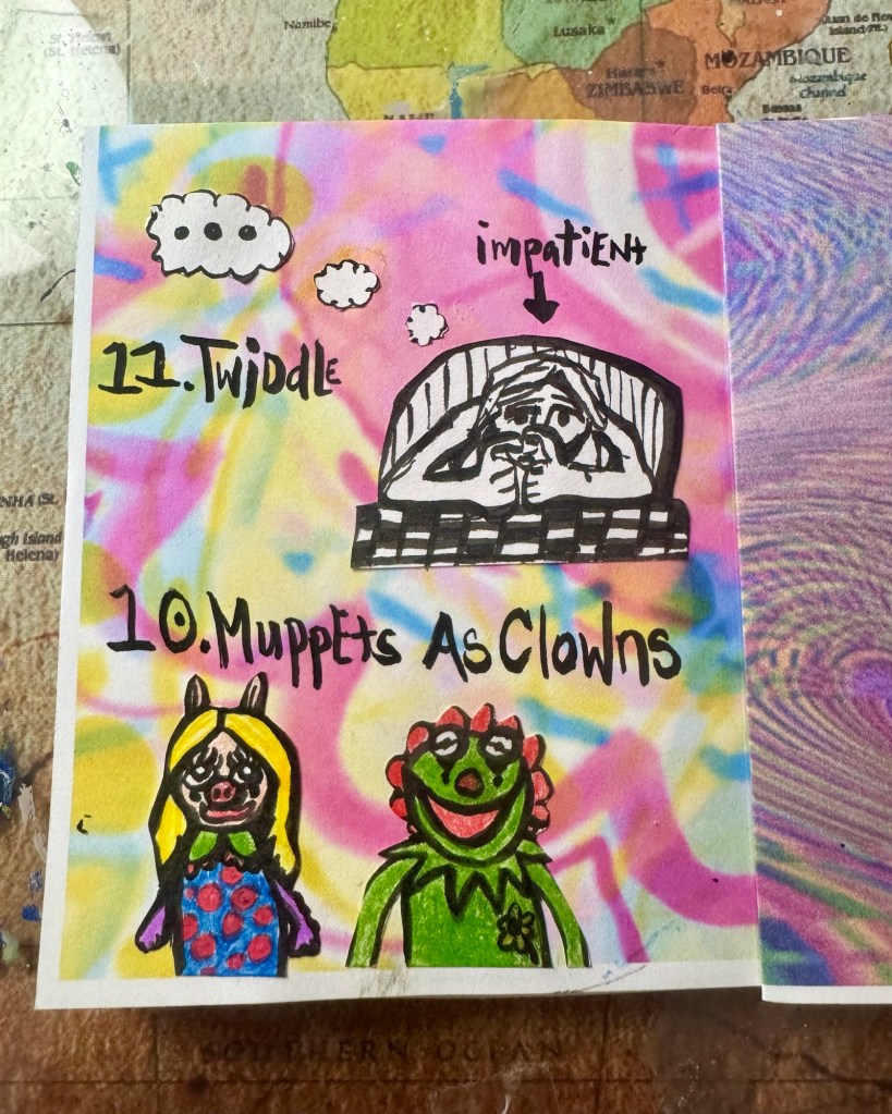 What is your relationship to discipline? How does is aide your creative work? Is it friend or foe? Do you avoid it all together? Try drawing a character, something that embodies discipline, that will make it easier for you to interact with. What does a conversation with them look like? How does it go? What do they expect from you in order to make your relationship work?