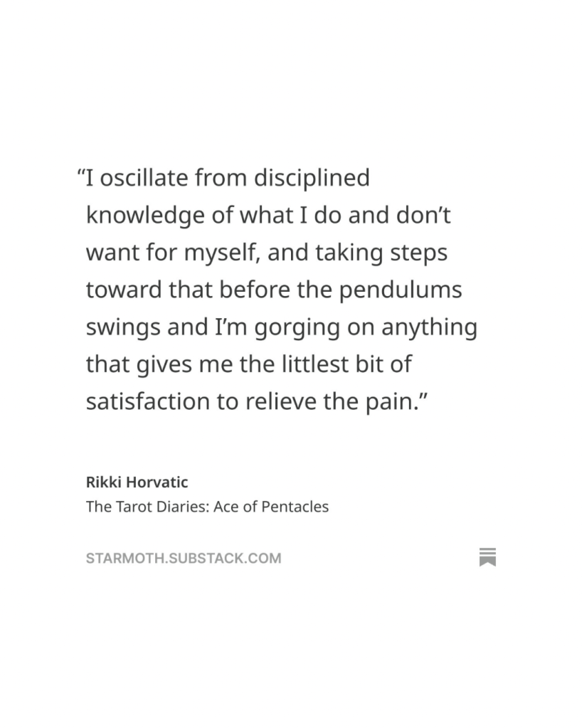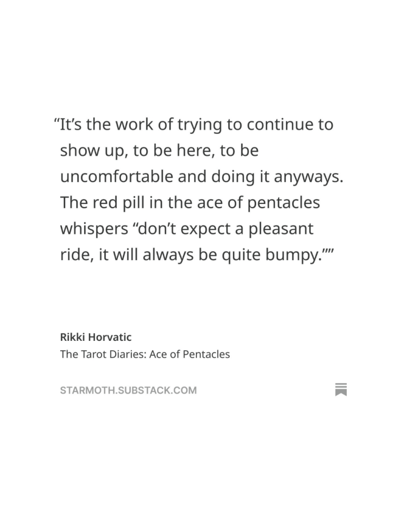 this week’s edition of The Tarot Diaries is now available. We’re talking about the ace of pentacles, how the hand is offering you the pentacle just as Morpheus offered Neo the red pill out of the matrix, about analog practice, about cooking and the moments that make sobriety and presence worth it.