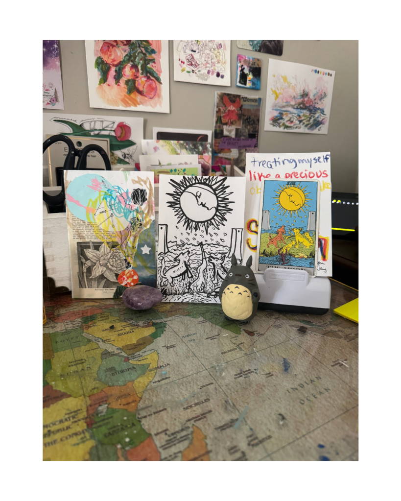 I’m writing a serial fiction over on Substack. It’s called Dear Lila: Refraction Road. It’s a meditative, surreal journey through an imaginal world where I meet an…interesting group of companions. It’s weird and trippy, I would love if you checked it out! Once complete, it’s my dream to compile it, edit it and make a new collage for each segment to publish into a limited edition book 💚