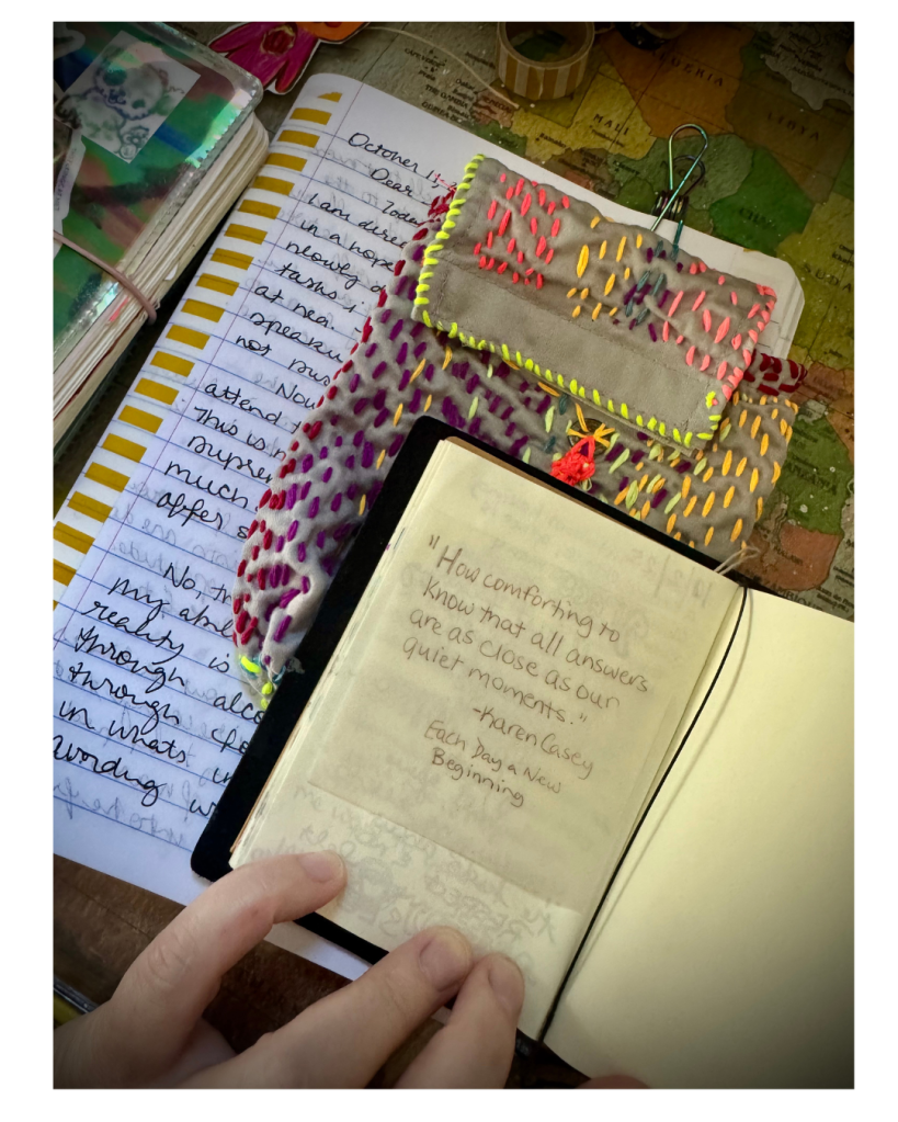 Daily rituals are good anchor points throughout the day for this. My altar practice, where I clean two cups to refill with water offerings, where I read my artist’s prayer, where I read from my daily readers, and I remind myself that everything is sacred…this is a pivotal anchor for me.