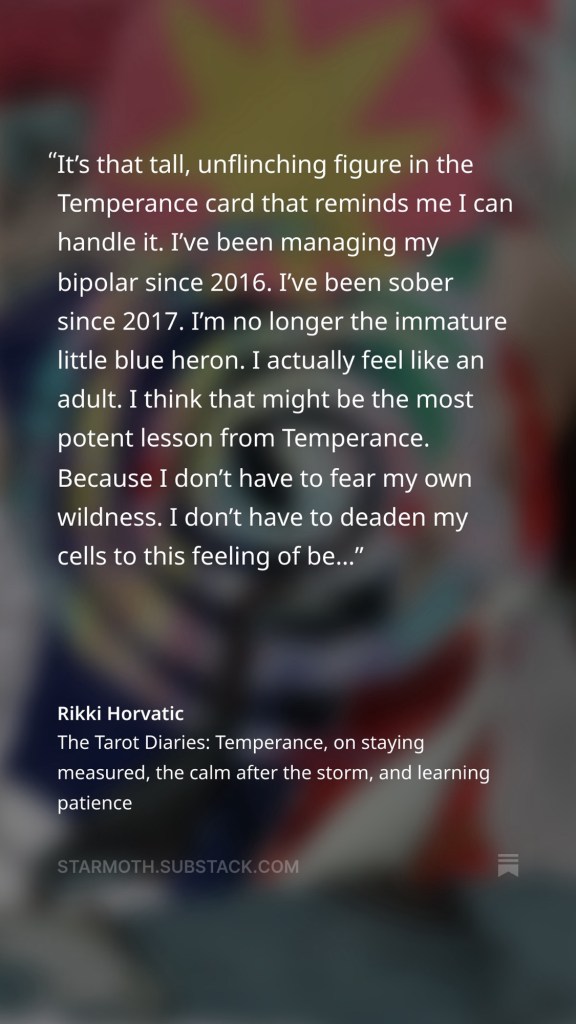 This project is a weekly walk with an individual tarot card. I will analyze the card. I will connect it with personal anecdotes. I will make art that is representative of the card, at least to me. I will try to embody the spirit of the card (or allow its’ spirit to embody me). I will look at the days of that week to see how the chosen card shows up in my life. It will be a practice of getting to know myself, becoming more intimate with the tarot, and coming back into my life. Tune in for status reports daily-ish here, or get the full week’s work in a delivered newsletter on Substack at https://starmoth.substack.com/. It has become clear to me that part of this ongoing documentation process will be a podcast. I am unsure if I should do this weekly, bi-weekly, or monthly. If you have a preference (I know there’s a lot of available content out there) please let me know in the comments. As always, I appreciate your time.