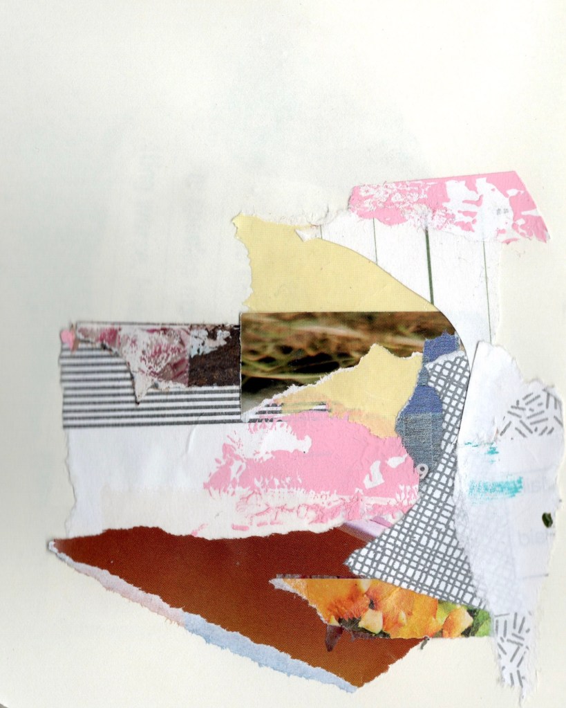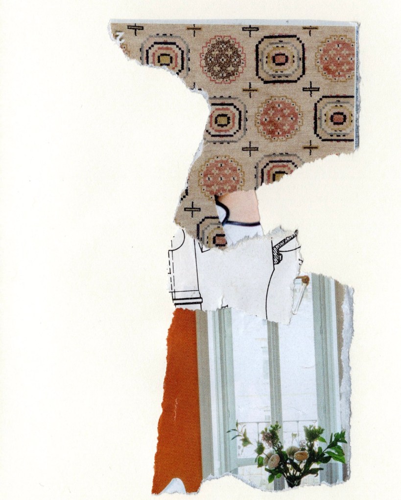 A collage made with vintage materials found during my artist dates recently. Also used one of my image transfers I tried the first week of The Artist’s Way program. Note to self: do more of these.