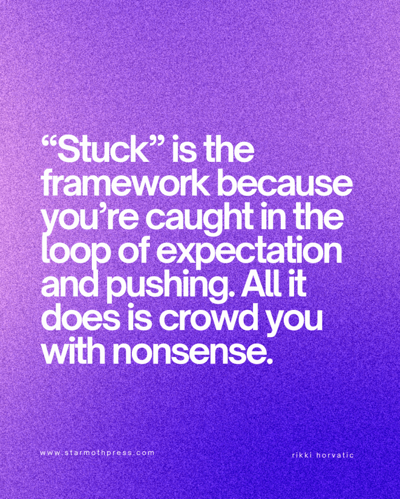 “Stuck” is the framework because you’re caught in the loop of expectation and pushing. All it does is crowd you with nonsense.