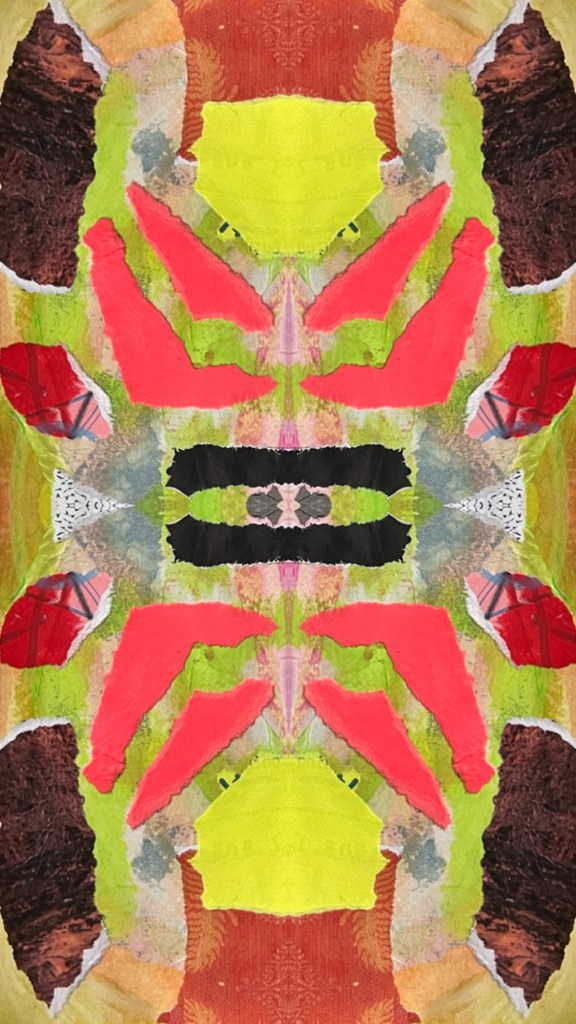 Some of these experiments are photos of collages I already shared that have been put through a mirror filter. Currently obsessed with the patterns that arise. I would love if you would share what you see in any of these works in the comments.
