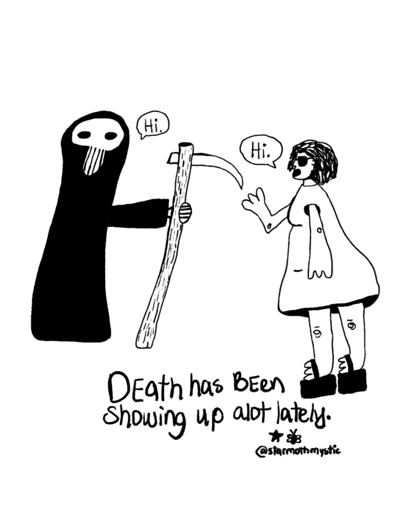 This project is a weekly walk with an individual tarot card. I will analyze the card. I will connect it with personal anecdotes. I will make art that represents the card. I will try to embody the spirit of the card (or allow its’ spirit to embody me). I will look at the days of that week to see how the chosen card shows up in my day to day life. It will be a practice of getting to know myself, getting reacquainted with the tarot, and coming back into my life. Tune in for status reports daily-ish, or get the full week’s work in a delivered newsletter.