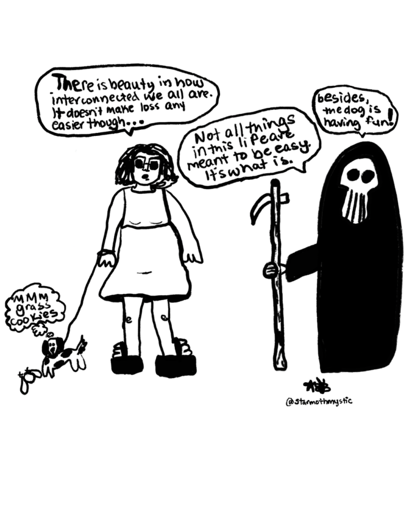 This comes back to strength because it brings me back to myself. Much like the infinity symbol above the person’s head in the card, I am reminded of forever returning. The daily minutiae used to be the bane of my existence…now it is an act of worship. I still struggle to pick up a dishcloth everyday. Laundry remains in the washer too long. But I am gentler. I am a buoy that gently rocks back and forth, back and forth. I may stray from the practices that help to keep me aligned with my body, my values, my soul…but I find my way back, each time a little bit quicker.