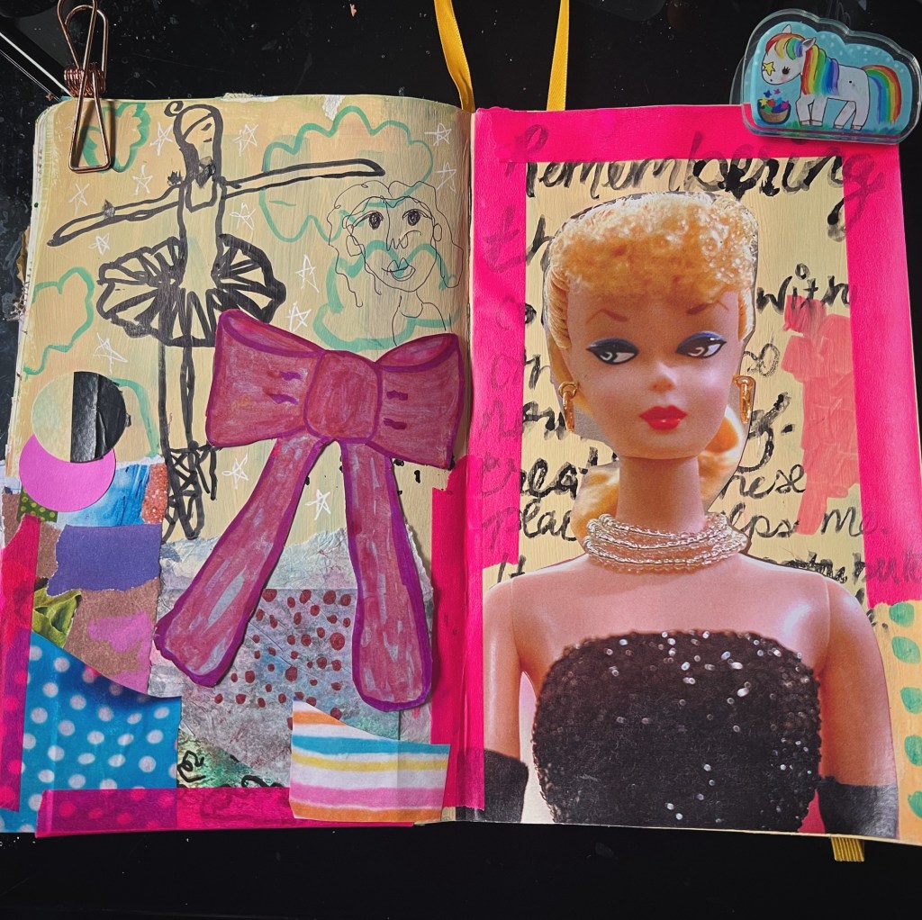 I was inspired to work with my inner child today. Little Rikki and I flipped through a little Barbie booklet I picked ip the other day — I finally watched the Barbie movie. And it reminded me how much I loved the color pink.